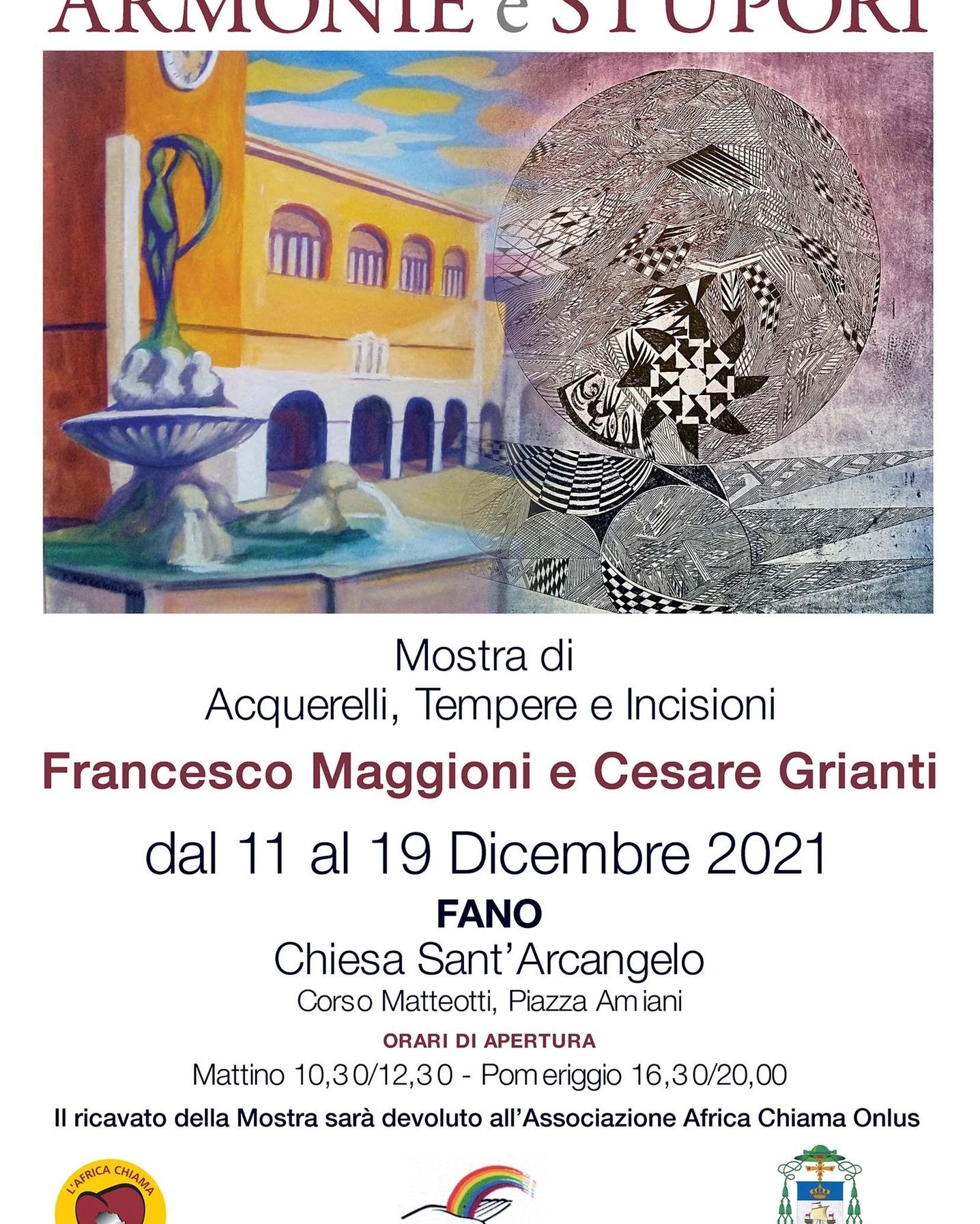FANO (PU) – Sabato 11 Dicembre alle ore 18 presso la Chiesa Sant’Arcangelo (C.so Matteotti) inaugura la mostra di acquarelli, tempere e incisioni “Armonie e Stupori”, opere di Cesare Grianti e Francesco Maggioni che hanno deciso di destinare l’intero ricavato a sostegno dell’associazione L’AFRICA CHIAMA.